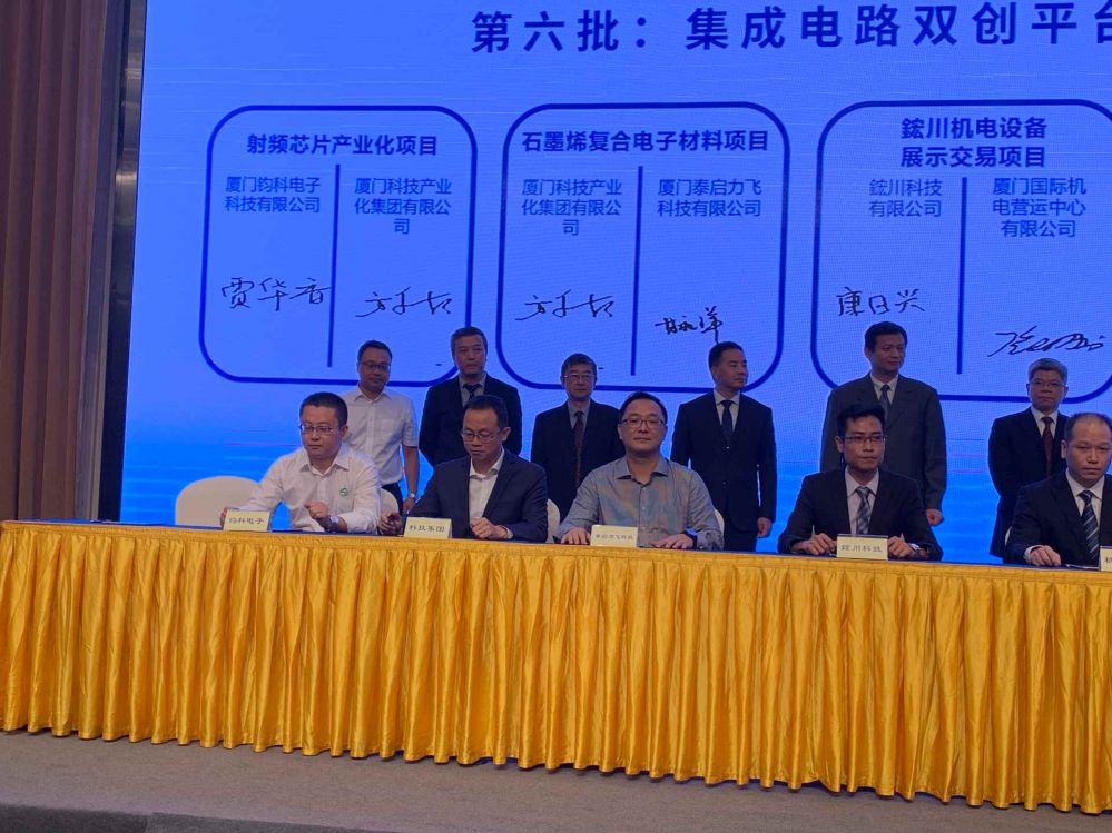 9月9日,由廈門市人民政府主辦,中國(福建)自貿試驗區(qū)廈門片區(qū)管委會、廈門市科技局、廈門市商務局承辦,廈門市臺港澳辦、廈門市集成電路行業(yè)協會、廈門自貿區(qū)等單位協辦的2019廈門自貿片區(qū)發(fā)展機遇說明會成功舉行。會上,科技集團與廈門鈞科電子科技有限公司、廈門泰啟力飛科技有限公司簽署了入駐集成電路萬翔基地合作框架協議??萍技瘓F謝勇堅董事長作為簽約見證人出席,集團常務副總方永松、鈞科電子賈華香總經理助理、泰啟力飛甘秋洋董事長作為簽約代表出席簽約活動。